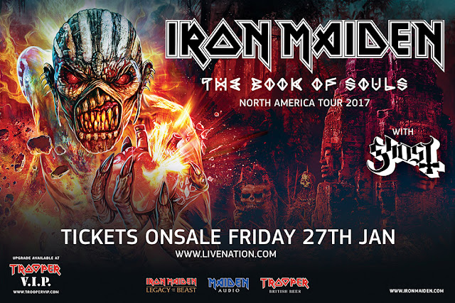 O Iron Maiden está felize em receber a banda GHOST como convidado especial para a esta turnê norte-americana de The Book Of Souls World Tour 2017
